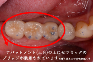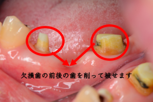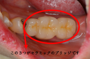 また、インプラント説明の際にも触れましたが、義歯と同様にブリッジとインプラントの併用も可能です。