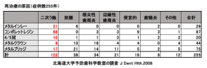 更に、保険診療における再治療の原因の約半数が二次う蝕(再び虫歯になるという事)であるという結果が出ており、つまりこれは、「再治療で更に歯を大きく削る治療が必要」という事なのです。